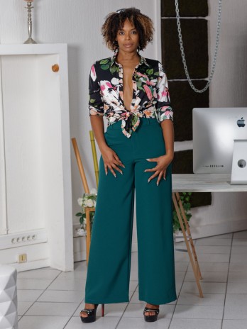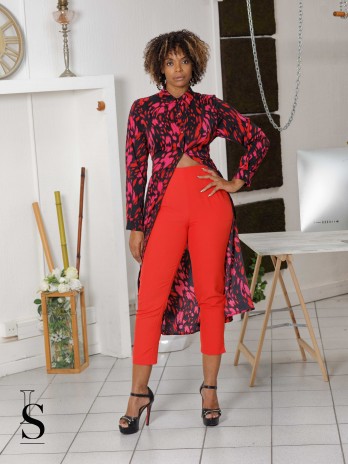 Pantalon taille haute 3/4. Portée avec notre robe chemise...