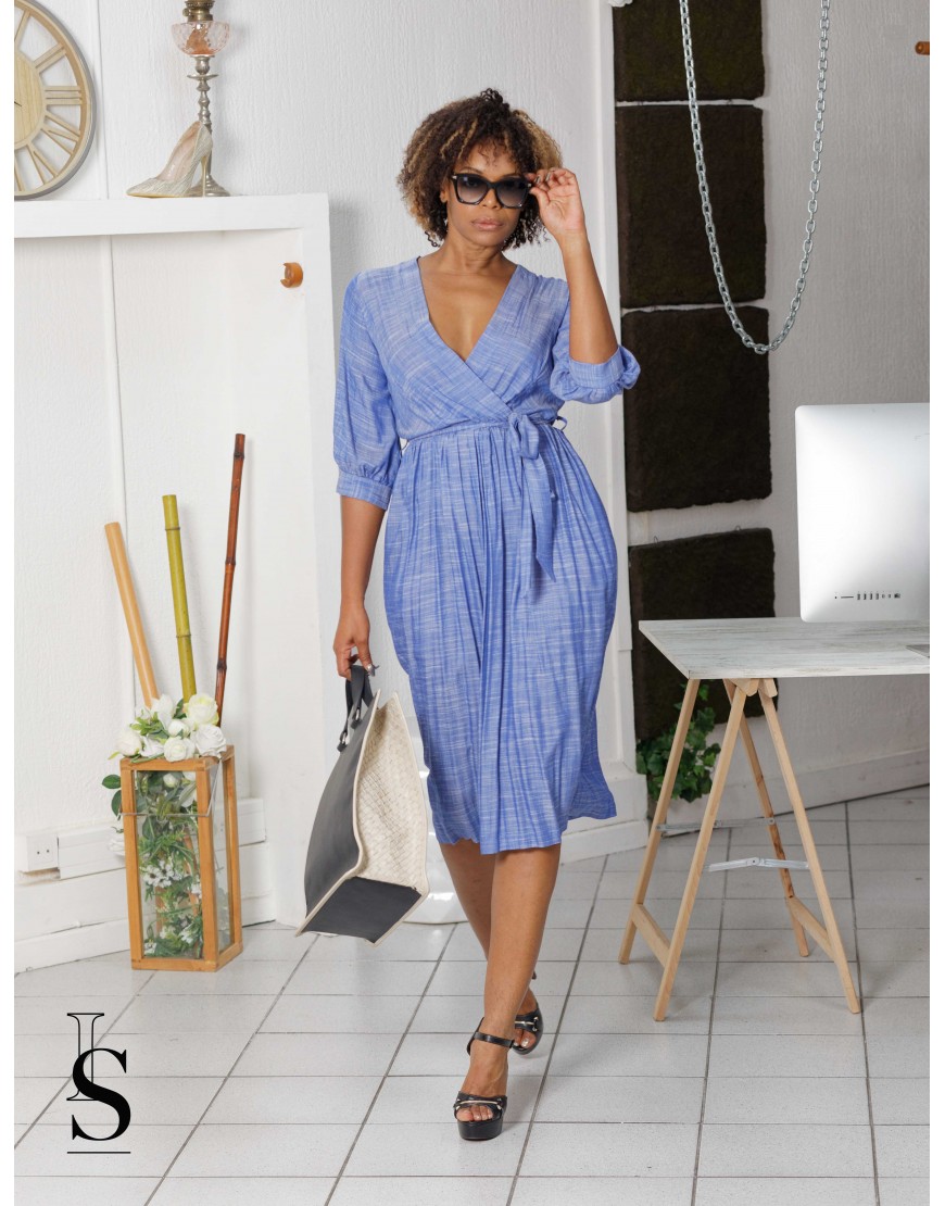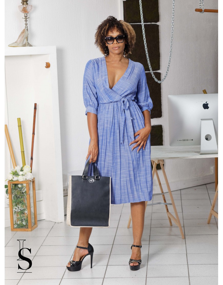 Une ample froncée, une robe porte feuille avec une ceinture à nouer dans un chambray de viscose doux.
