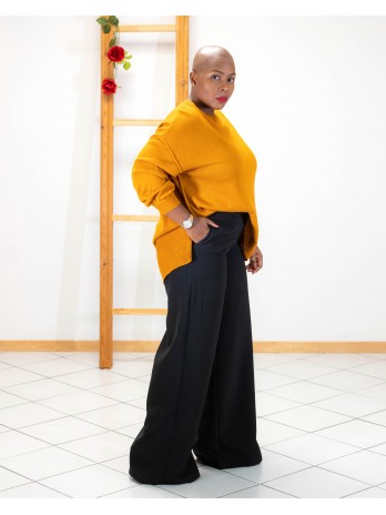 Pantalon long noir. Le modèle porte la taille XL PS /le pull...
